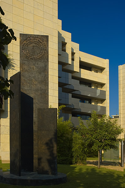 Η μοντέρνα αρχιτεκτονική και η εξαιρετική διαμόρφωση του περιβάλλοντα χώρου προσδίδουν επιβλητική προσωπικότητα στο κτίριο. Κόσμημα αποτελεί το γλυπτό το οποίο επιχειρεί μια ιστορική αναδρομή της ζωής του ανθρώπου και βρίσκεται στην ιδιόκτητη πλατεία της εταιρίας, η οποία αποτελεί τον περιβάλλοντα χώρο των κτιρίων. Ενώ το επιτρεπτό όριο κάλυψης του οικοπέδου είναι 70%, η ΘΕΜΕΛΙΑ Χουβαρδάς Α.Τ.Ε. κάλυψε μόνο το 25% με σκοπό την ανέγερση αυτής της πλατείας αλλάζοντας το τοπίο της περιοχής.
